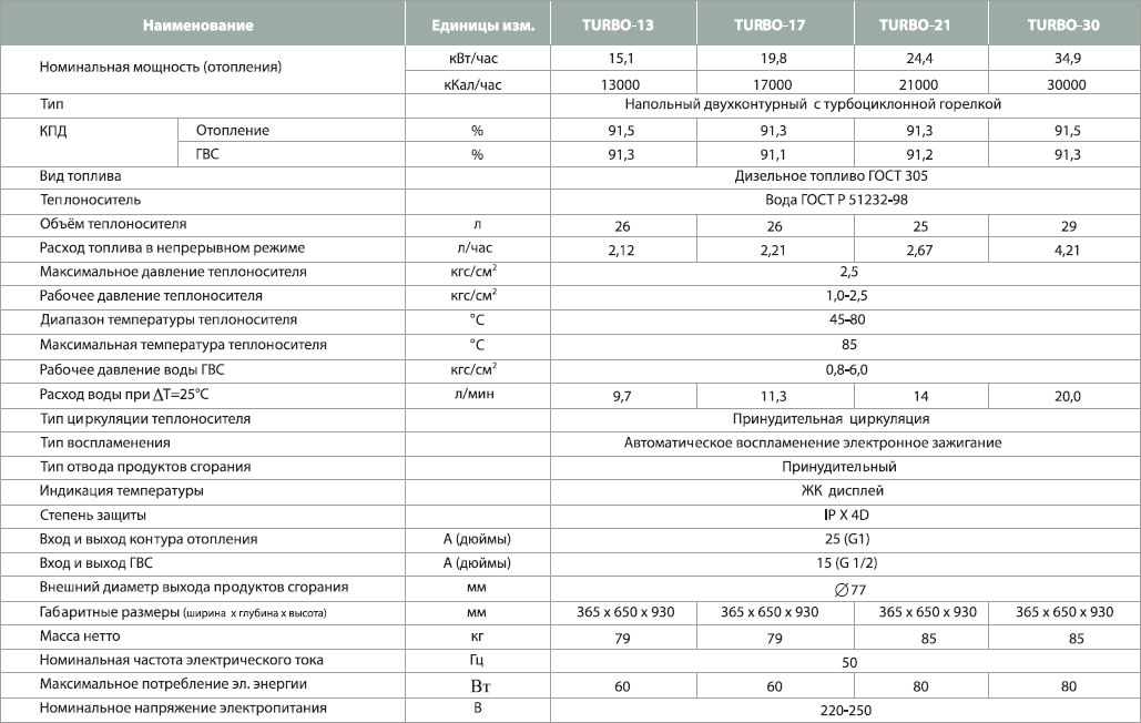 Технические характеристики дизельного котла Kiturami Turbo 30R
