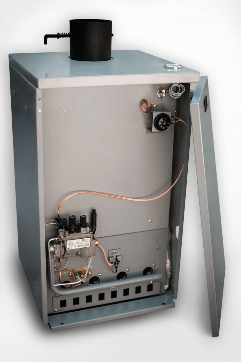 - Уличный газовый котел в базовом исполнении не комплектуется всевозможными пультами управления, насосами, будками - котёл полностью готов к работе. При необходимости клиент сам может доукомплектовать котёл всем необходимым по своему усмотрению.
