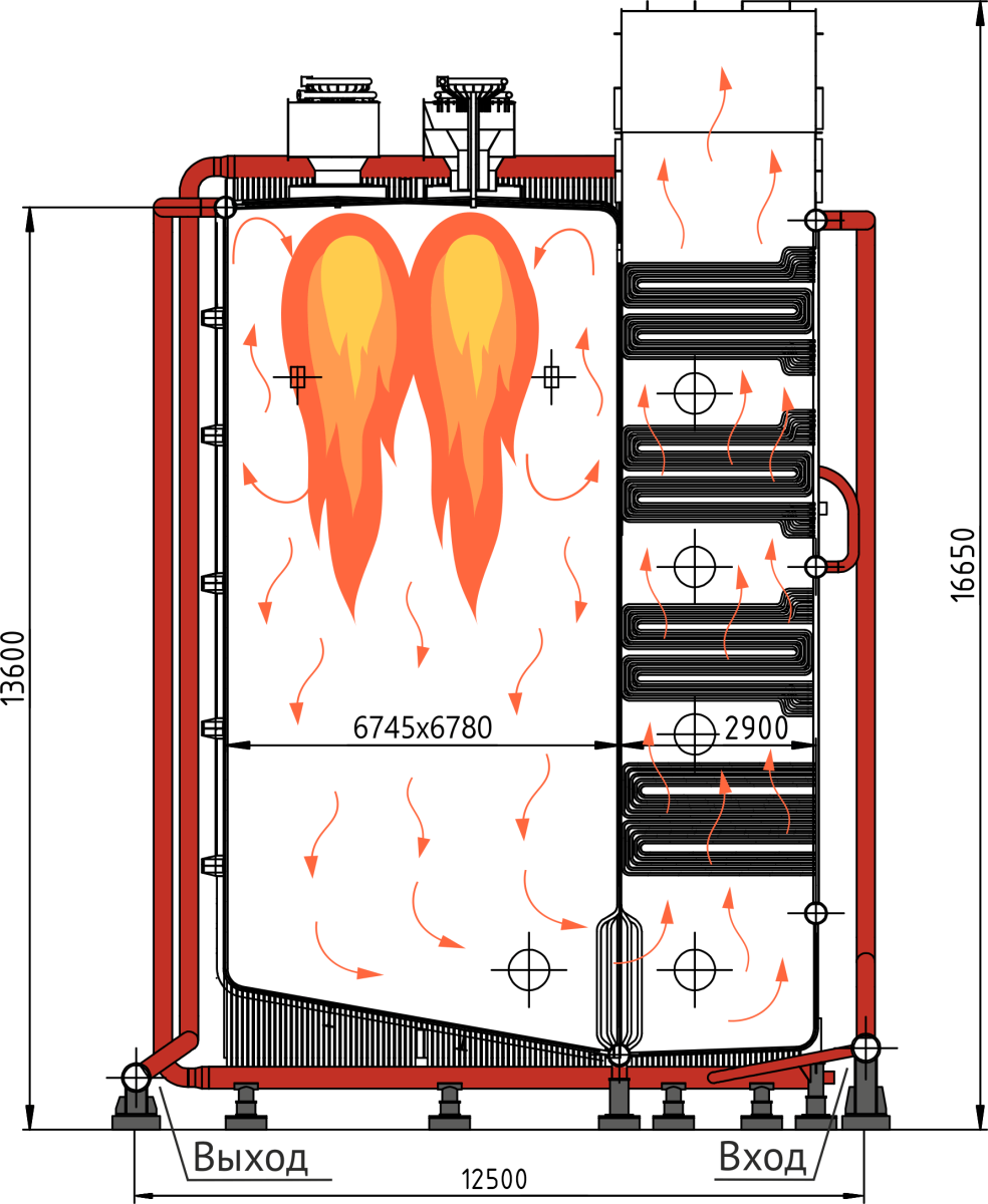 TEMRON Wmax-150 - водотрубные газовые котлы высокой мощности, оборудованные горелками,расположенными на потолке. Имеют высокие экономические и экологические характеристики.