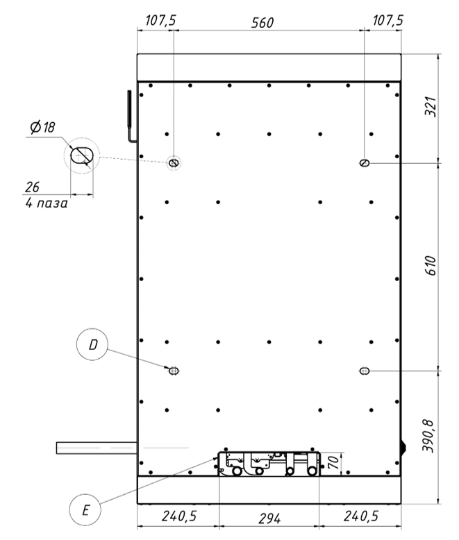 габаритные размеры вид снизу ТГУ-НОРД-С котел наружного размещениягабаритные размеры вид сзади ТГУ-НОРД-С котел наружного размещения