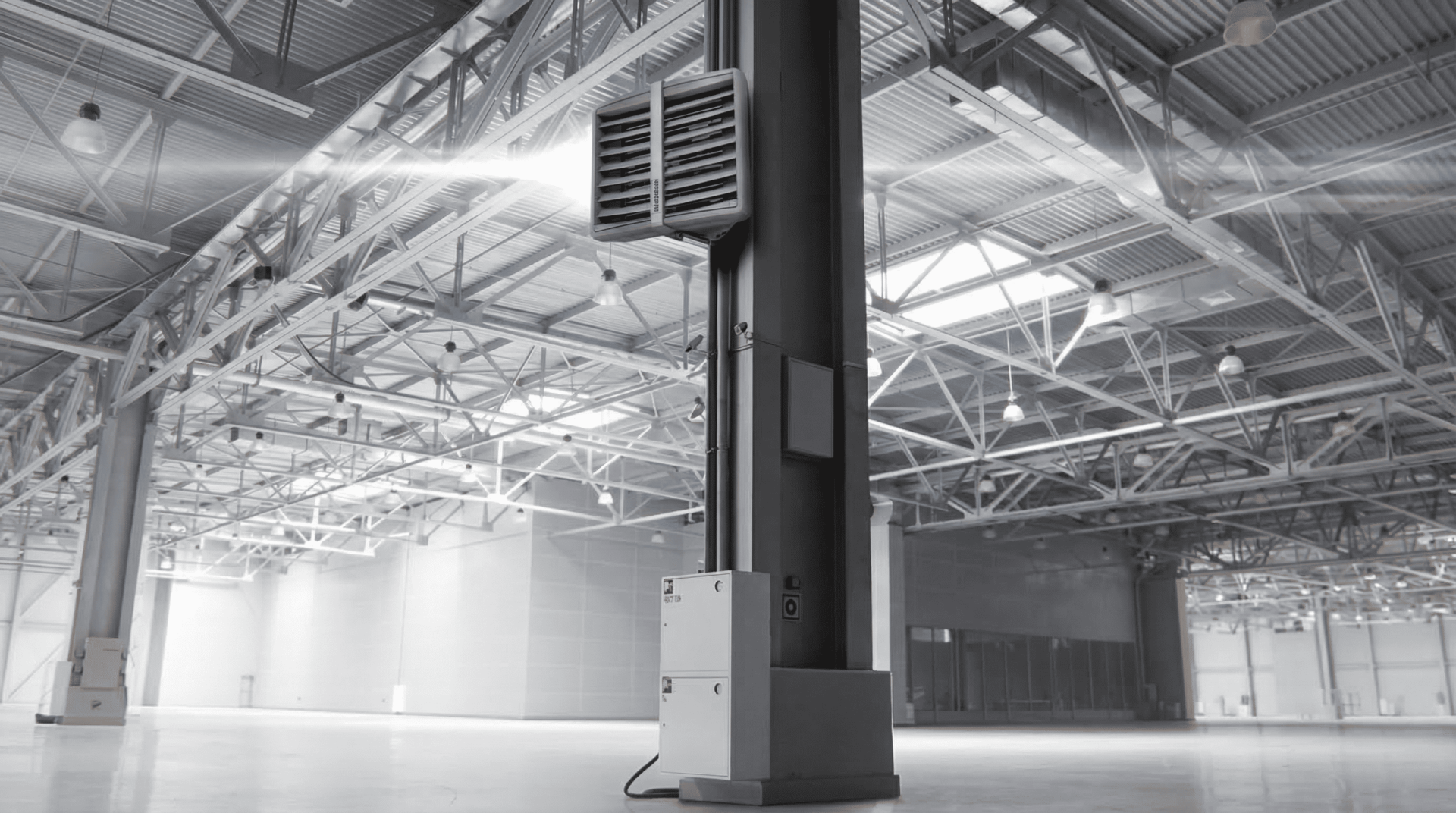 - Быстрый прогрев- оборудование размещается непосредственно в отапливаемой зоне и создаёт управляемый прогрев, быстро нагревая воздух и равномерно распределяя его по помещению.